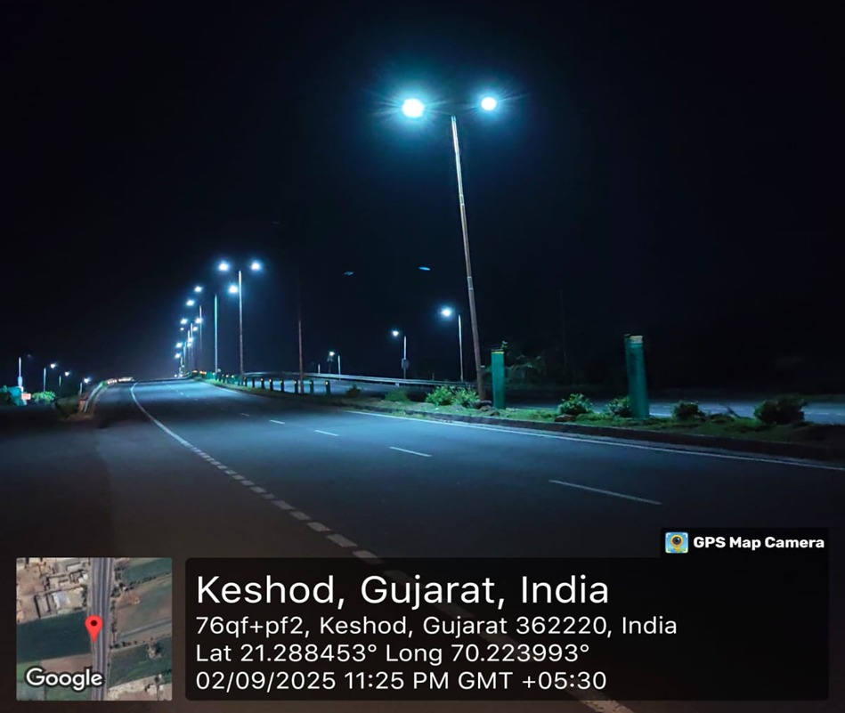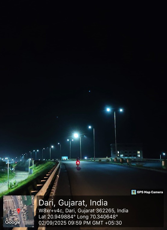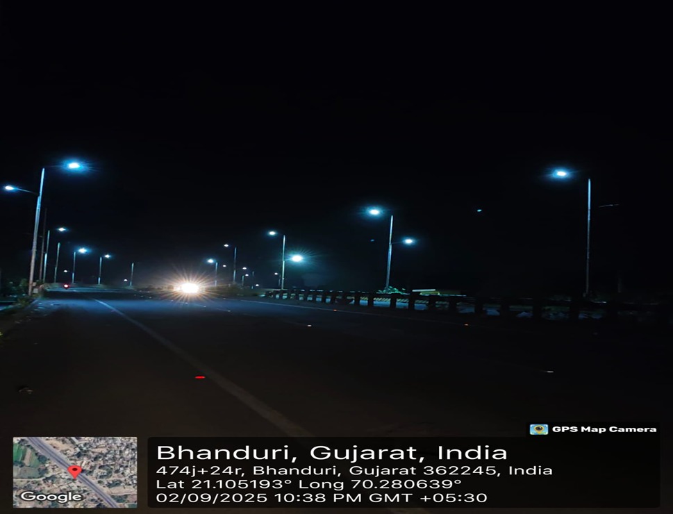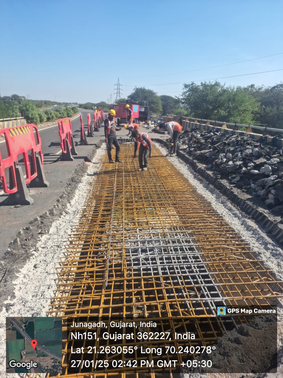 The NH-151 Project in Gujarat covers a stretch of 102.196 kms under a PBMC framework including 1 Flyover, 3 ROBs, 9 Major Bridges, 77 Minor Bridges, 19 VUPs/PUPs, 47 Box Culverts, 41 Pipe Culverts, and 16 Slab Culverts. Project Cost: Rs.171.23 Crs.This corridor plays a vital role in connecting the cultural city of Somnath with the industrial hub of Jetpur.