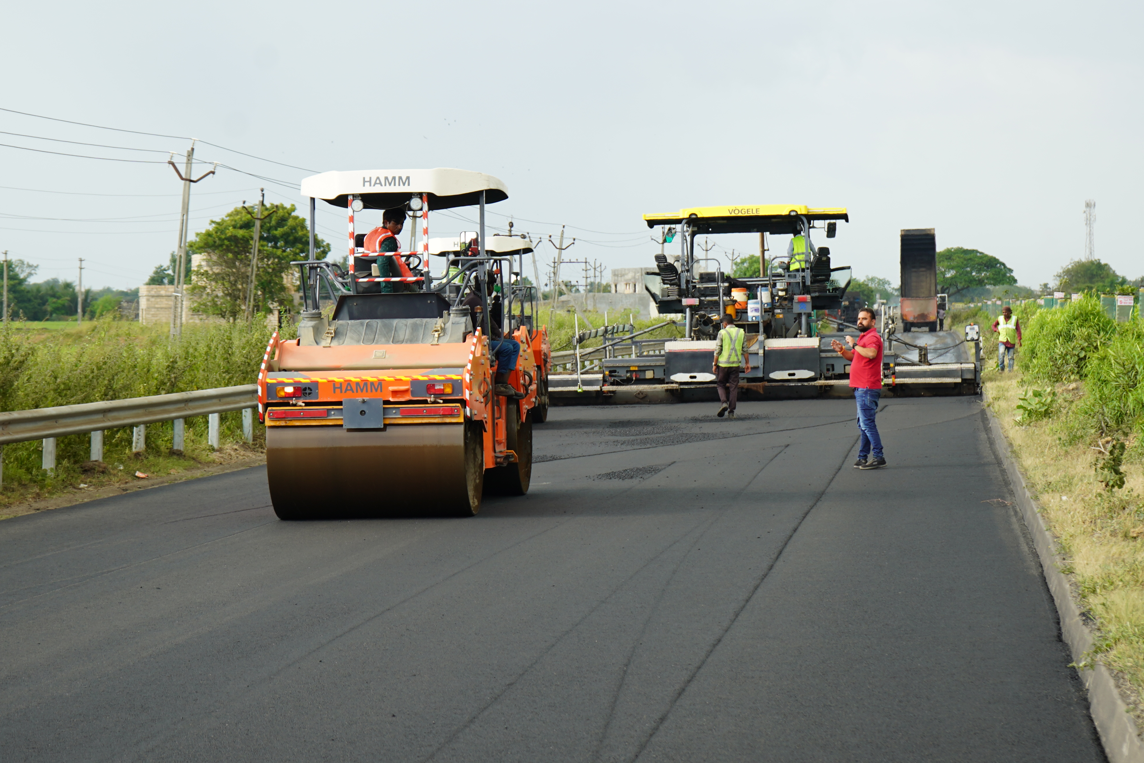 The NH-151 Project in Gujarat covers a stretch of 102.196 kms under a PBMC framework including 1 Flyover, 3 ROBs, 9 Major Bridges, 77 Minor Bridges, 19 VUPs/PUPs, 47 Box Culverts, 41 Pipe Culverts, and 16 Slab Culverts. Project Cost: Rs.171.23 Crs.This corridor plays a vital role in connecting the cultural city of Somnath with the industrial hub of Jetpur.